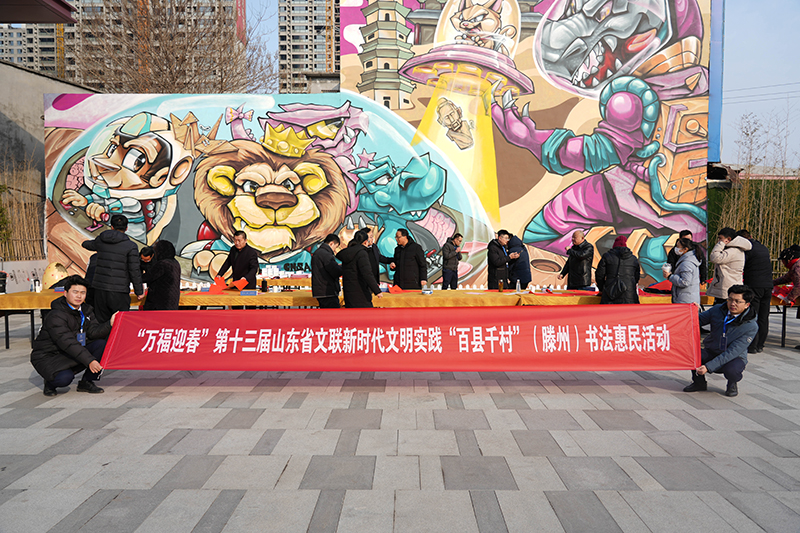 1月21日上午,由滕州市宣傳部、文明辦、新時代文明實踐服務(wù)中心主辦的“翰墨賀歲·福滿善城·萬福迎春”新春送祝福活動在山東興滕置業(yè)開發(fā)的興滕·未來城、柳岸風和兩項目的營銷中心現(xiàn)場舉行,滕州市文聯(lián)、文旅局、文化館、書法協(xié)會書畫家二十余人參加了本次活動,用傳統(tǒng)的書畫藝術(shù)形式,為市民群眾送上飽含真心的新